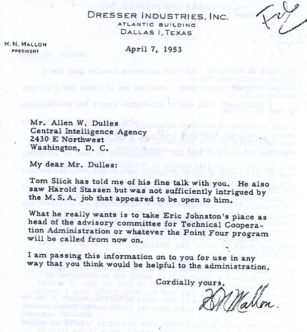 Dulles was in the 1950s. Dulles a former CIA Director and a Warren