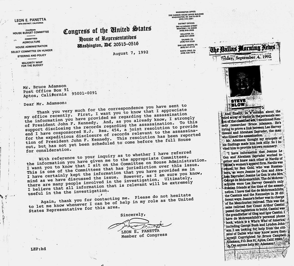 of the DCWA was Henry Neil Mallon, who hired G Photograph of Allen Dulles at Dallas Council on World Affairs early 1953 circa next to Prescott Bush's classmate Neil Mallon. Mallon hired George H. W. Bush at Dresser Industries after WWII. All were members of the Skull and Bones secret society at Yale University. Ten years later Dulles was the Warren Commissioner whom had been fired as CIA Director by President John F. Kennedy. I will say that Richard Bartholomew did a great job on cartoon-like characters of de Mohrenschildt, LBJ and others. James Lorin Silverberg who was the copyright lawyer for the Abraham Zapruder family throughout the 1990s. Below is a second article from The Dallas Morning News in 1992 which was published long before I met Richard Ray Bartholomew! My work is only 2,000 pages in 15 volumes and not 10,000 as Richard Ray Bartholomew stated in his review. Was Bartholomew's wife related to Zapruder family lawyer who obtained 16 million dollars from the US government for the copyright of Zapruder's film? The Zapruder's and de Mohrenschildt's were members of the Dallas Council on World Affairs and knew each other at the Dallas women's clothing manufacture Nardis of Dallas? The Library of Congress had no way to predict that JFK writers would post on the internet copyrighted material in the late 1990s. Yet, they were suppose to protect those authors for their conclusions and material in the Library of Congress. Timeline of the internet during 1990s. Click here for Link #2 Timeline of internet. Congressman Sam Farr assisted my updated 13 volumes of Oswald's Closest Friend; when the Library of Congress either purged or lost them. They were reinstated after I submitted a second CD with PDF format. In 2005 Congressman Sam Farr came to my aid when former CIA agent James Billington and then the Librarian of Congress was implicated in my work as a friend of Dimitri Von Mohrenschildt. Adamson's entire multi volume de Mohrenschildt Story and The JFK Timeline Chart copyright were lost, misplaced at the Library of Congress. I was able to send in a duplicate and copyright was reinstated with a grace of two years thanks to Congressman Sam Farr. Note; Adamson joined Ebay in 1998-March, 2023 and Elon Musk founded Pal Pal in 2002 circa. Adamson was a member of Pay Pal. Congress had an obligation to stop Pay Pal and to protect the U.S. Dollar from being converted the U.S. dollar into currency from every other country in the world. The above is true and correct to the best of my knowledge. Signed - Bruce Campbell Adamson ---- October 8, 2025.